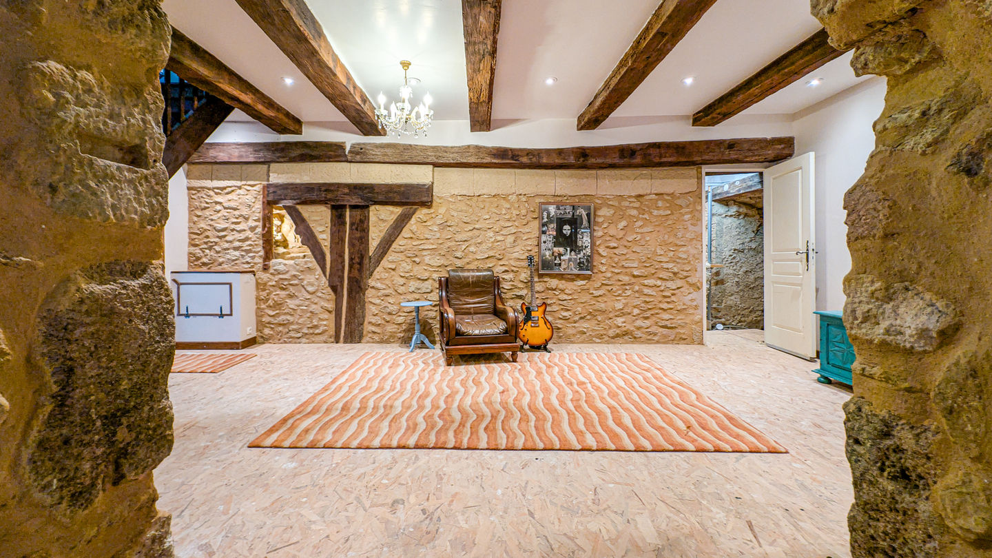 Suite parentale de 80 m² au dernier étage avec vue panoramique, salle d’eau attenante, murs en pierre